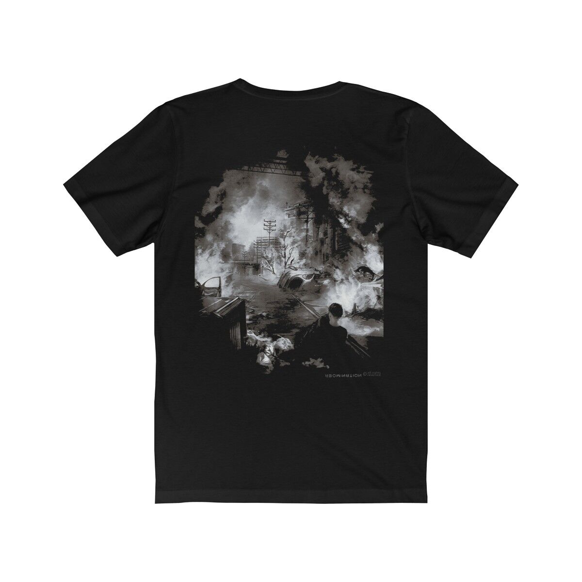 After being thrown into a brick wall by the shockwave emanating from the explosion, William looks back to survey the aftermath just before he loses consciousness… Show off your inner-personality with this unique t-shirt.
