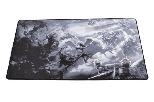 Angels are fighting Demons, Good against Evil, in the battle for men’s souls. This Play Mat is a special edition scene from the novel Creation Abomination.
